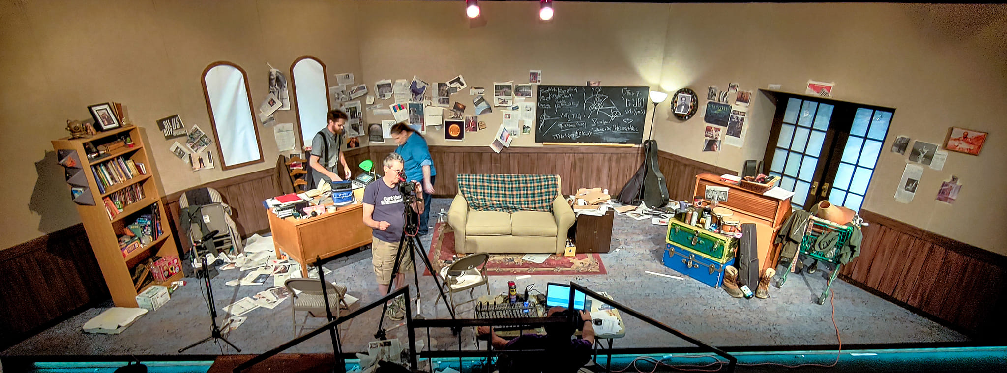 Jeff describes a characteristic unfolding of theater folks making do… They had the lights, the stage and the set. Mathew Caine, a great local photographer was willing to film the play. Jeff likely put it mildly when he said, “Most people in theater don’t like film, but the head of the theater said. “Yeah whatever, do what you want. You’ve got the stage, go for it.” He decided to direct the play Heliocentric as a film. “No one was really holding us back.”